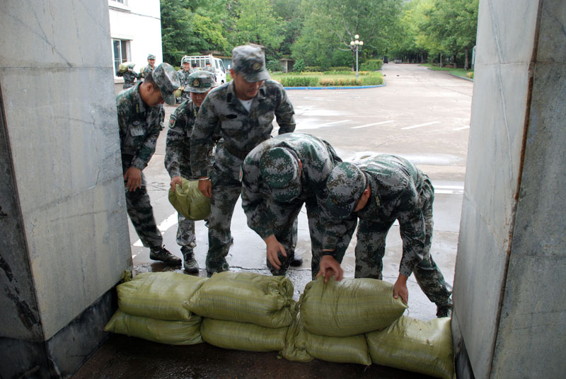 警報聲響起,集結完畢的民兵防汛抗洪連隊員,列隊向公司領導報告后,迅速跑向早已準備好的防汛沙袋、鐵鍬等物資存放車輛,有的背沙袋、有的拿鐵鍬,奔向預設的防洪地點,壘沙袋、筑土壩,經過大家的共同奮戰,險情排除,演練活動圓滿結束。