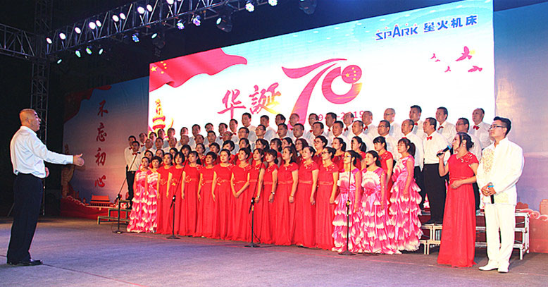 秋天是浪漫的季節,每一片落葉仿佛寫滿豪情;秋天是成熟的季節,每一滴雨水似乎充滿詩意。9月30日晚上,星火機床公司職工家屬2000余人,齊聚星火家園,帶著對祖國母親的無限崇敬,放聲高歌,共同祝福偉大祖國七十華誕,祝愿祖國幸福快樂,繁榮昌盛。