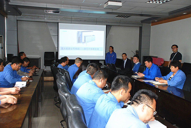 為提升專業(yè)技術(shù)人員專業(yè)知識(shí)技能,熟練使用西門子數(shù)控系統(tǒng),進(jìn)一步了解西門子變頻器及低壓控制類電氣元件的性能,提高工作效率。5月19日下午,星火機(jī)床公司邀請(qǐng)西門子公司專業(yè)技術(shù)團(tuán)隊(duì),來公司舉辦西門子數(shù)控系統(tǒng)知識(shí)講座。星火機(jī)床集團(tuán)公司總經(jīng)理、星火機(jī)床研究院院長(zhǎng)劉勝,星火機(jī)床研究院常務(wù)副院長(zhǎng)展海瑜及設(shè)計(jì)工藝、電氣調(diào)試、售后服務(wù),各單位電氣調(diào)試維修人員20多人參加培訓(xùn)。