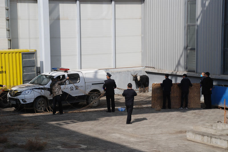 得知情況后,星火機床公司立即報告相關管理部門。甘肅省小隴山林區森林公安局接警后,派森林警察迅速來到星火工業園。經確認,他們決定將其送往附近的林區。可是,由于天已黑,鬣羚產生了恐慌情緒,出現了攻擊人的行為。出于安全考慮,他們只好決定第二天再采取行動。為了做到既不傷害人,又能夠保護野生動物,星火機床公司安排人將鬣羚引導到兩個分廠之間的空地,關閉了前后大門,為其準備了水和草料,將其妥善安置。