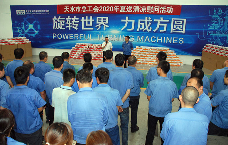 7月22日,天水市總工會經(jīng)費(fèi)審查委員會主任何付忠一行3人,來星火機(jī)床公司開展2020年夏送清涼慰問活動,為奮戰(zhàn)在一線的職工送上了價值6萬余元的防暑飲品。星火集團(tuán)公司總經(jīng)理劉勝,黨群工作部副部長馬存福等人接待。