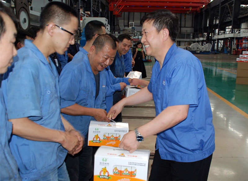 何付忠和劉勝一同為職工代表送上了慰問品。