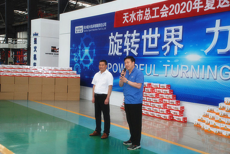 在星火機(jī)床公司工業(yè)園慰問活動現(xiàn)場,何付忠講話指出,我受市委市政府、市總工會委托,今天來星火機(jī)床公司開展2020年夏送清涼慰問活動。這是市總工會多年堅持開展的一項(xiàng)活動,充分體現(xiàn)了市委市政府、市總工會對企業(yè)職工的關(guān)心和關(guān)愛,以及貫徹落實(shí)“人民至上、生命至上、健康至上、安全至上”的理念。今年是極不尋常的一年,疫情、災(zāi)情嚴(yán)重影響了經(jīng)濟(jì)發(fā)展,作為企業(yè),要提高政治站位,引導(dǎo)職工牢固樹立“四個意識”,增強(qiáng)“四個自信”,努力完成“六穩(wěn)”“六保”任務(wù)。同時,要教育職工增強(qiáng)防范意識,做好疫情防控和防暑降溫工作,保障職工生命安全和身心健康,為公司圓滿完成生產(chǎn)任務(wù)做出應(yīng)有貢獻(xiàn)。