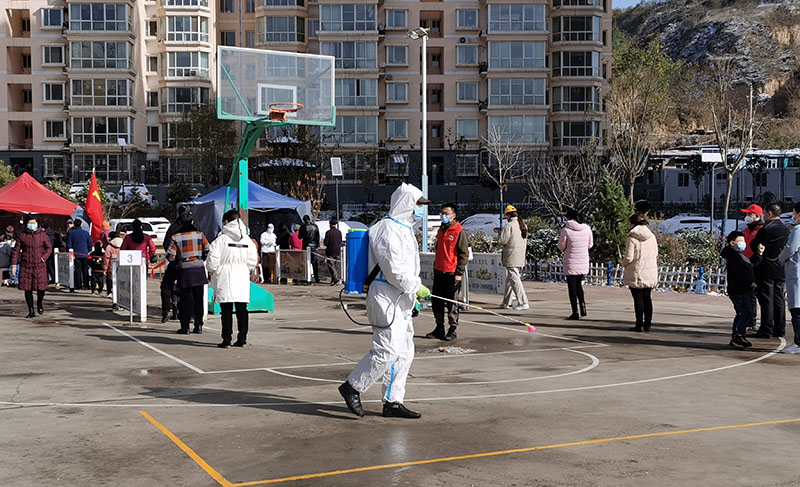 楊直立即與公司總經理助理胡慶峰溝通,調配車輛,聯系商家,連夜購置防疫消殺物資,及時將防疫物資發放到公司各單位,各部門;醫生桑博、李彤等配合社區人員,提前準備桌椅、照明設施等,配合援助開展核酸檢測的醫護人員;醫生岳國亮、劉全成則主動擔起環境消殺的重任,與病毒“正面交鋒”……