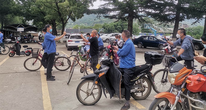 早上7點鐘,星火家園門口。公司各單位負責人已紛紛到崗,配合門衛和社區工作人員,確認上班職工,為職工家屬及住戶發放出入證。
