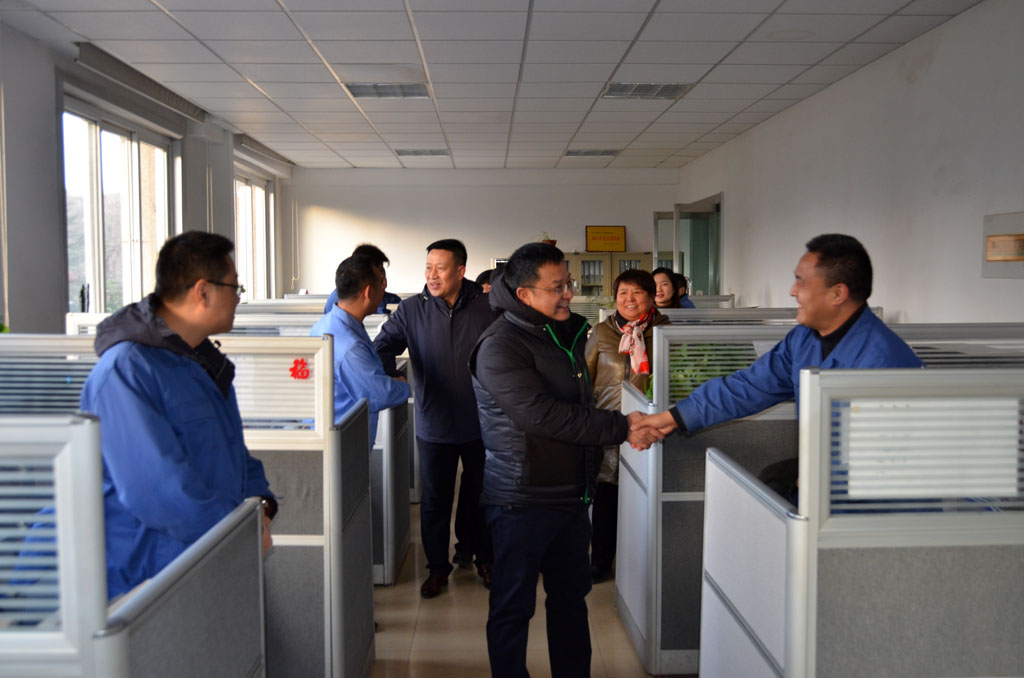8點上班,公司領(lǐng)導(dǎo)蔣保權(quán)一行又前往各生產(chǎn)車間及部門,向辛勤耕耘的職工同志們拜年。每到一處,蔣保權(quán)、劉勝等都親切地與職工交談,了解節(jié)日出行、家人身體健康等情況,向他們送去新春的祝福。一聲聲關(guān)切的問候,一句句真誠的祝福,讓節(jié)后第一天上班的職工感受到公司濃濃的關(guān)愛和溫情。