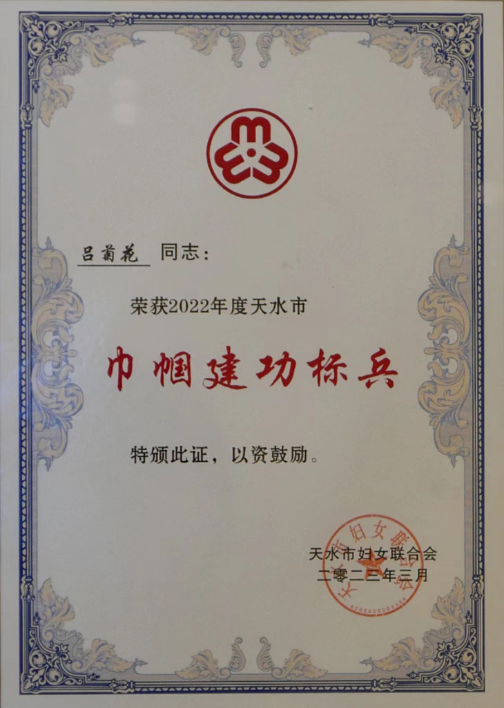 榮獲全市“巾幗建功標兵”稱號,是呂菊花數年如一日努力的結果,也是公司多年來培養的結果。呂菊花表示,作為一名普通女工,能得到領導和大家的認可并獲此殊榮,倍感榮幸。將以更加飽滿的工作熱情和昂揚向上的精神風貌,珍惜崗位,奮力拼搏,為公司高質量發展貢獻力量!