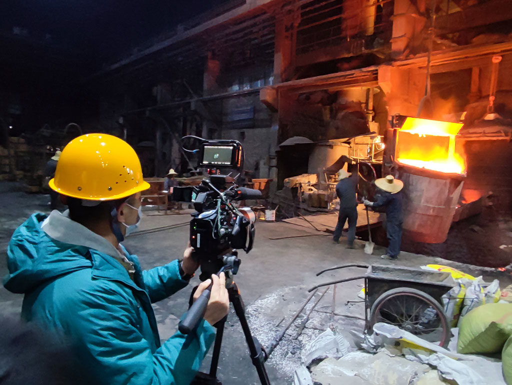31日晚抵達公司后,他們不辭辛苦,深入星火機床鑄造公司拍攝了生產場面。火紅的鐵水奔流而下,飛濺鐵花耀眼奪目,樸實的職工讓人敬佩,艱苦的環境令人感嘆。32日,攝制組再次進入星火機床鑄造公司生產現場,多角度深挖星火厚重的歷史底蘊和豐富的文化積淀。