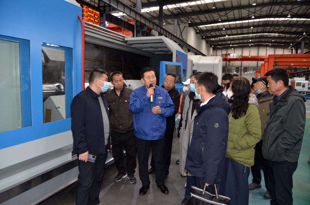 星火機床集團公司總經理劉勝,副總經理趙錦銘等陪同參觀生產現場,介紹公司生產經營和科技創新成果。