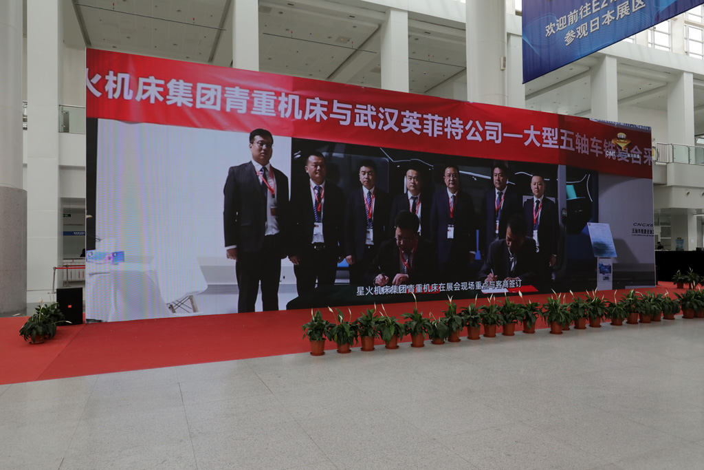 4月14日,中國(guó)機(jī)床工具行業(yè)協(xié)會(huì)主會(huì)場(chǎng)大屏及視頻號(hào)滾動(dòng)播放星火機(jī)床集團(tuán)公司展位商務(wù)洽談及簽約盛況。