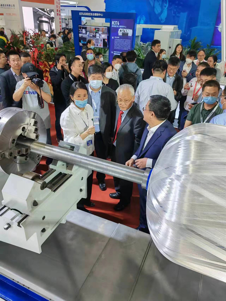 邱鋼、王黎明一行認(rèn)真細(xì)致的參觀了星火機(jī)床集團(tuán)公司展出的多軸聯(lián)動復(fù)合材料纏繞機(jī)床,詳細(xì)了解了該機(jī)床的性能參數(shù)、技術(shù)優(yōu)勢以及應(yīng)用領(lǐng)域,并對星火機(jī)床技術(shù)創(chuàng)新工作給予充分肯定。