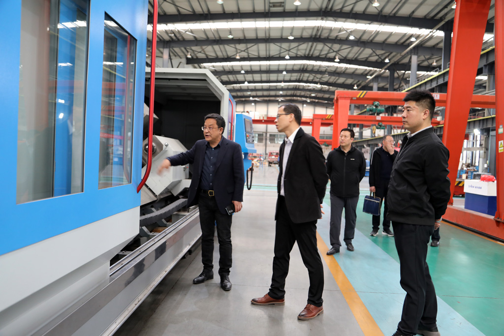 蔣保權(quán)向李強(qiáng)一行詳細(xì)介紹了企業(yè)的歷史沿革、生產(chǎn)經(jīng)營狀況,以及科技創(chuàng)新、項(xiàng)目建設(shè)等情況。他結(jié)合國內(nèi)外環(huán)境分析了機(jī)床行業(yè)未來發(fā)展趨勢,重點(diǎn)介紹了星火機(jī)床公司適應(yīng)時(shí)代發(fā)展要求,研發(fā)生產(chǎn)的大型五軸聯(lián)動(dòng)車銑復(fù)合加工中心、多軸數(shù)控纏繞設(shè)備等諸多處于行業(yè)領(lǐng)先地位的產(chǎn)品。他說,國家將“工業(yè)母機(jī)”定義為現(xiàn)代化體系的核心樞紐。星火機(jī)床將發(fā)揚(yáng)“三線”企業(yè)的奉獻(xiàn)和拼搏精神,為用戶解難題,為大國鑄利器,在打破國外壟斷桎梏繼續(xù)努力。