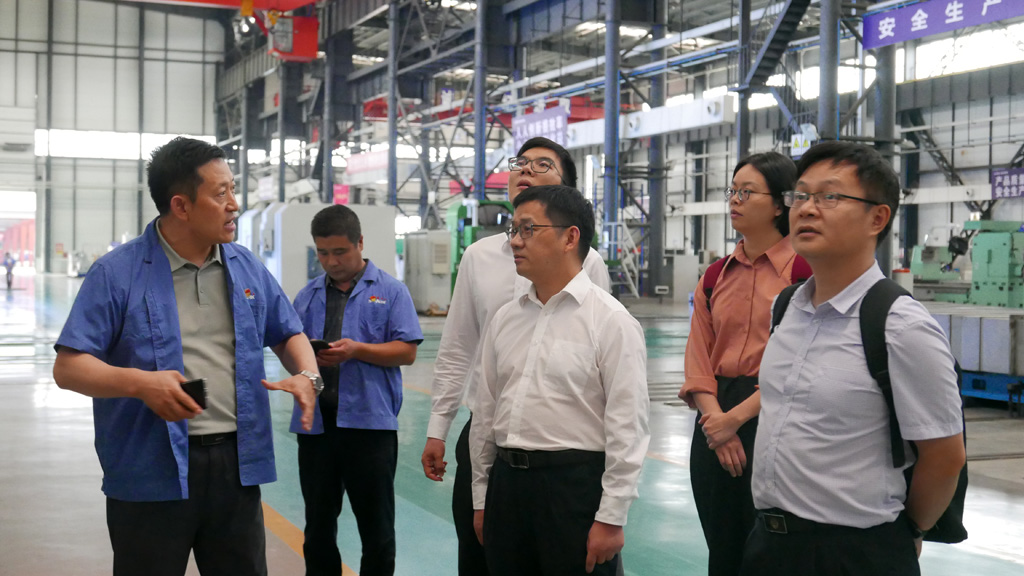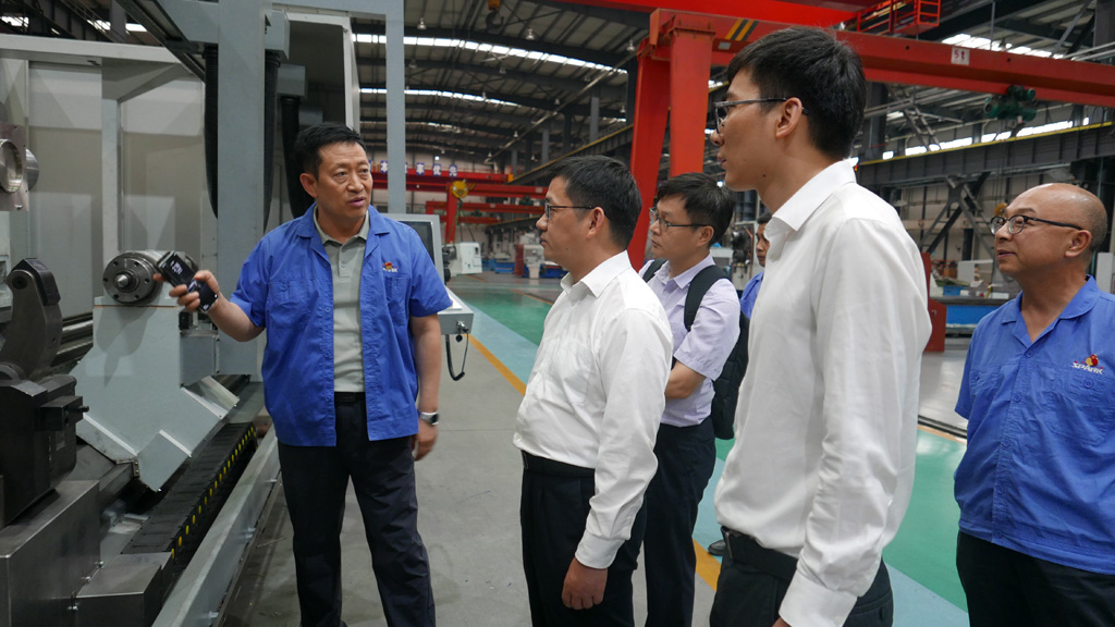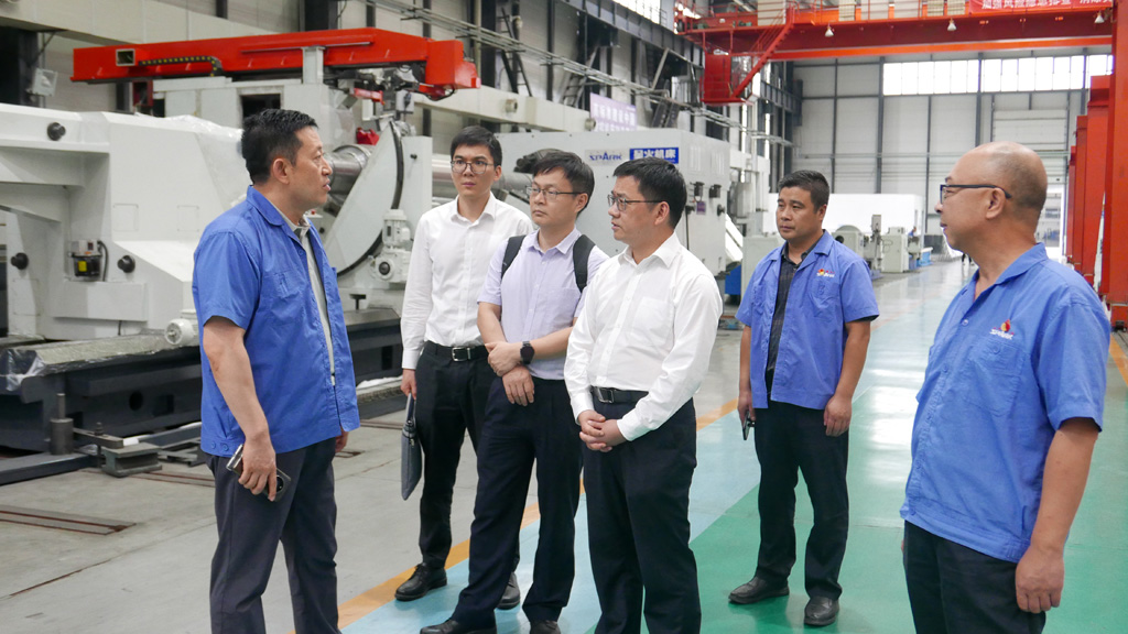 在星火公司生產(chǎn)現(xiàn)場,劉勝向陳新文一行詳細(xì)介紹了公司發(fā)展歷程、產(chǎn)品種類、加工能力、技術(shù)創(chuàng)新、未來發(fā)展規(guī)劃等,并陪同參觀了公司研發(fā)生產(chǎn)的各類大、重型機(jī)床,復(fù)合材料纏繞設(shè)備等。