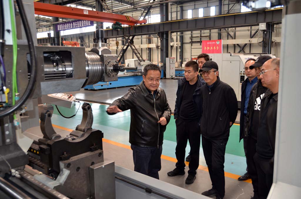 蔣保權(quán)等陪同敬君生一行參觀了公司研發(fā)生產(chǎn)的大重型機(jī)床、五軸聯(lián)動數(shù)控精密機(jī)床、復(fù)合材料纏繞設(shè)備,以及星火青重公司生產(chǎn)的車輪車床、軋輥車床等用于國民經(jīng)濟(jì)各行業(yè)和航空、軍工、船舶、核電、鐵路等領(lǐng)域的各種新產(chǎn)品,并介紹了產(chǎn)品的工作原理、市場份額及企業(yè)發(fā)展前景。