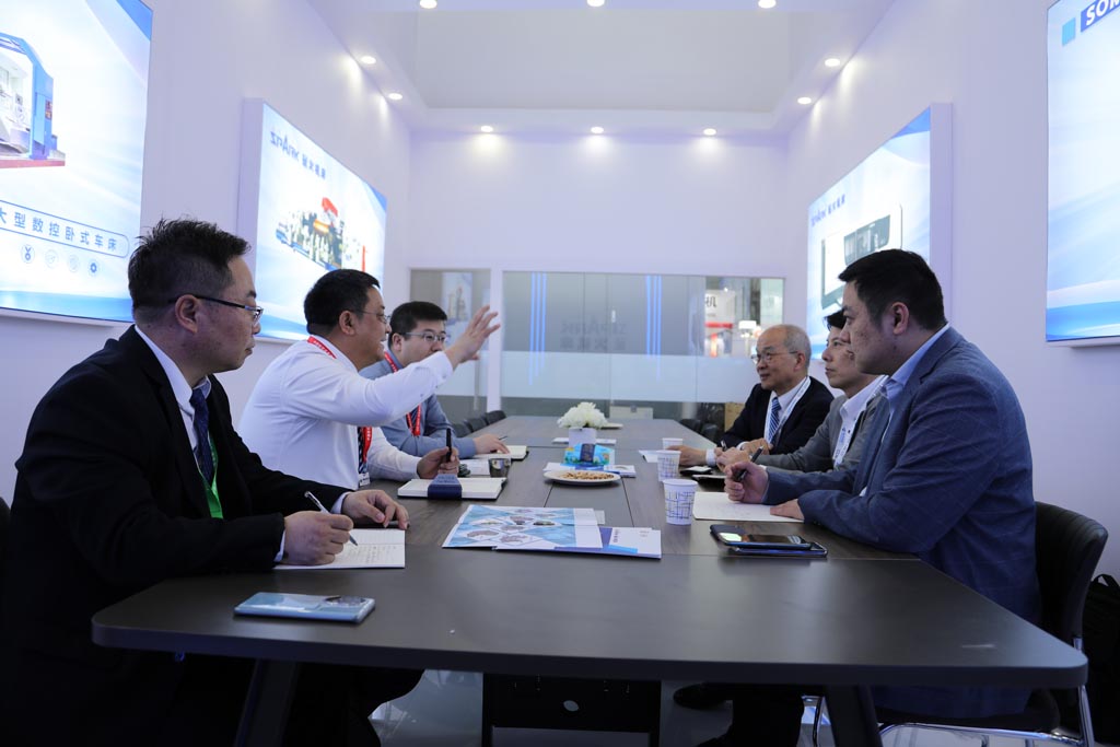 4月11日上午,日本株式會社(SKTD)社長金田正宏先生在株式會社營業部海外經理唐飛的陪同下,來到星火機床展位參觀。黨委書記、星火機床集團公司董事長蔣保權在會客室會見了日本客商并與其座談。蔣保權詳細介紹了企業發展歷史及天水地區的人文環境。最后,雙方達成了合作意愿。