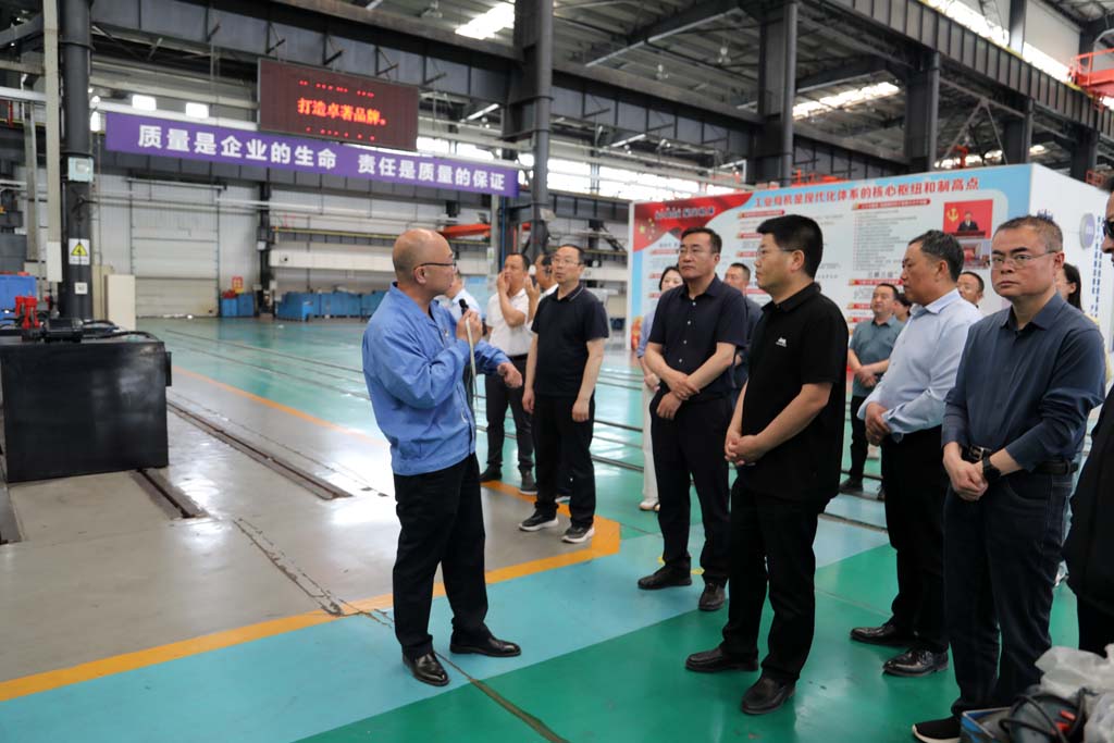 市委直屬機關工委、市招商局聯合組織開展“黨建向中心聚焦·為發展賦能”重大項目踐學活動。5月17日,參加活動的市發展改革委、市工信局、市財政局、市住建局等部分市直機關黨組織負責人及黨務干部一行蒞臨星火機床公司參觀。黨委副書記、星火機床集團公司副總經理蔣俊等企業相關領導陪同參觀并介紹企業情況。