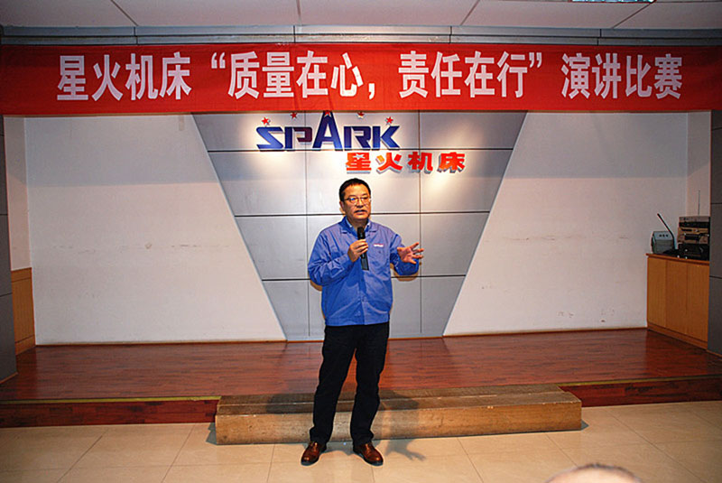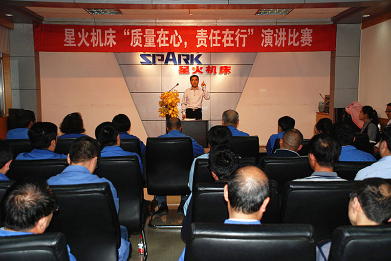 為扎實有效推進企業質量文化建設,提高企業凝聚力、向心力,提高領導干部和全體員工質量意識,在2018全國 “質量月”活動中,星火機床公司為認真貫徹落實“加強市場監管,建設質量強國”主題,組織開展了“質量在心、責任在行”領導干部演講比賽,經過預賽、決賽較量,于9月14日晚上圓滿落幕。