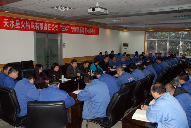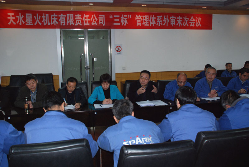 3月6—8日,由國(guó)家注冊(cè)高級(jí)審核員王述偉、周利云,國(guó)家注冊(cè)審核員程華、張宜春、李永文組成的審核組來(lái)星火機(jī)床公司進(jìn)行“三標(biāo)”管理體系再認(rèn)證及監(jiān)督審核。通過(guò)3天的現(xiàn)場(chǎng)審核,8日下午6:20分,審核組組長(zhǎng)、國(guó)家注冊(cè)高級(jí)審核員張建民主持召開(kāi)末次會(huì)議,總結(jié)審核工作,宣布審核結(jié)論。張建民宣布:公司環(huán)境與職業(yè)健康安全管理體系再認(rèn)證審核、質(zhì)量管理體系監(jiān)督審核順利通過(guò)。