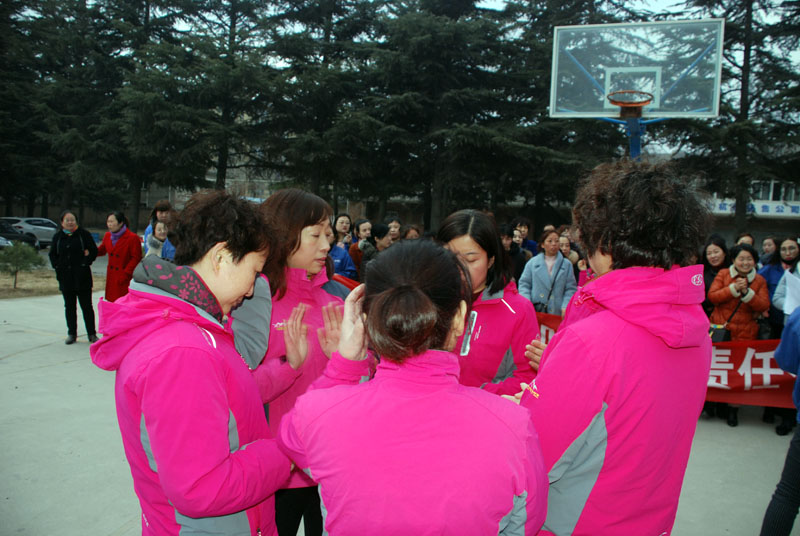 下午6點下班,籃球場上笑聲陣陣、喜氣洋洋,參加活動的女職工近200人按組別整齊的排列,印有“星火機床慶祝三八活動”的鮮紅條幅映襯的她們格外亮麗、精神,尤其是星火職工醫院代表隊,身著統一的紅色運動服,顯得格外耀眼。星火集團公司黨委副書記、副總經理、工會主席蔣俊來到活動現場,參觀比賽。