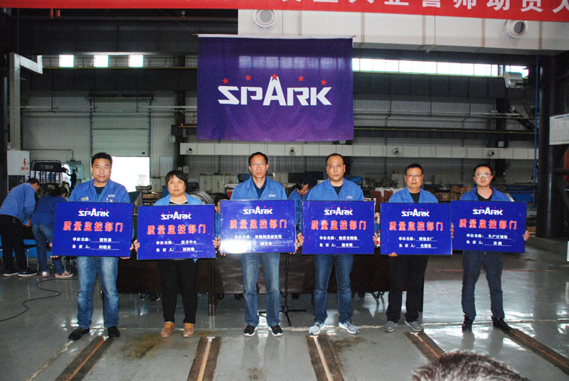 隨后,參會(huì)人員先后上臺(tái),面向公司SPARK旗幟列隊(duì),舉起右手宣誓。蔣保權(quán)為星火集團(tuán)及星火機(jī)床公司領(lǐng)導(dǎo)領(lǐng)誓。宣誓人齊聲朗誦誓詞:星火品牌,代代傳承,質(zhì)量根基,全員責(zé)任;始于設(shè)計(jì),推陳出新;精于工藝,孕于匠心;成于裝配,雕琢精品;立足市場(chǎng),客戶(hù)為尊;勵(lì)精圖治,上下同心,星火興亡,我的責(zé)任。劉勝、蔣俊分別為各管理部門(mén)參會(huì)人員領(lǐng)誓。