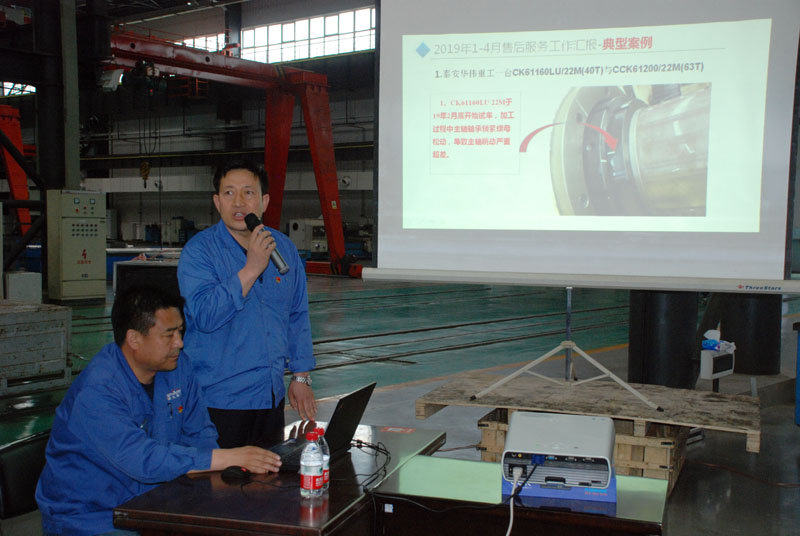 星火集團(tuán)總經(jīng)理劉勝首先通過(guò)PPT播放并通報(bào)了公司1—4月份產(chǎn)品售后服務(wù)中發(fā)現(xiàn)的設(shè)計(jì)、加工、裝配、噴漆等各種質(zhì)量問(wèn)題及用戶(hù)反饋的意見(jiàn)。
