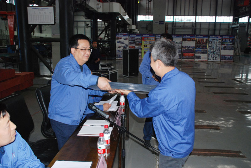 星火集團(tuán)董事長(zhǎng)蔣保權(quán)向被確定的質(zhì)量監(jiān)控部門(mén)、班組和質(zhì)量監(jiān)控點(diǎn)授牌。